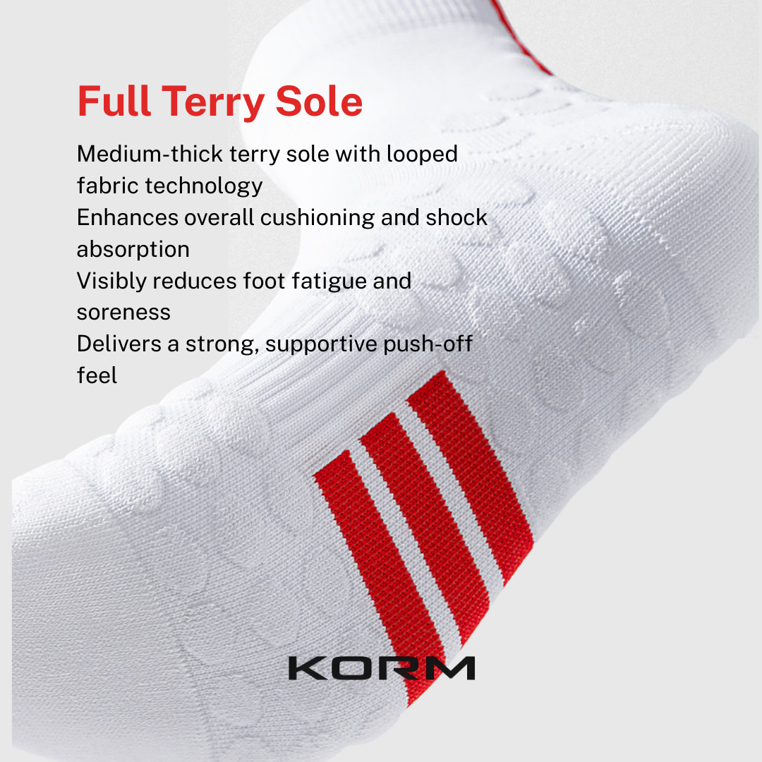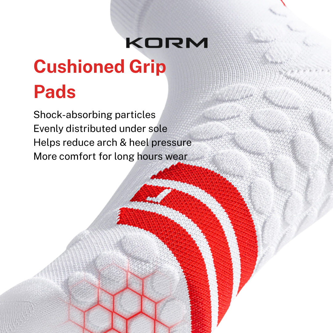 Upgrade your performance and recovery with KORM Core 20 Mid Calf Compression Socks, engineered for athletes who demand comfort, stability, and support in every step. Designed with targeted compression, anti-slip grip, and cushioned terry sole, these socks help reduce fatigue, enhance circulation, and keep you moving confidently.