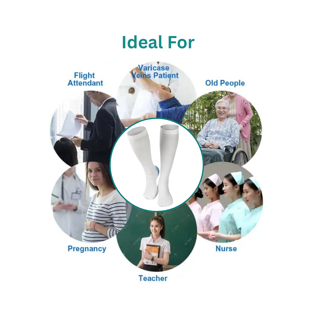 SPEED UP POST SURGERY RECOVERY: Compression stockings are designed to provide 15-20 mmHg gradient compression from the toes to the upper legs. This graduated compression promotes oxygen flow and blood circulation, gives your legs more energy and helps with the relief and improvement in your legs, knees and feet.